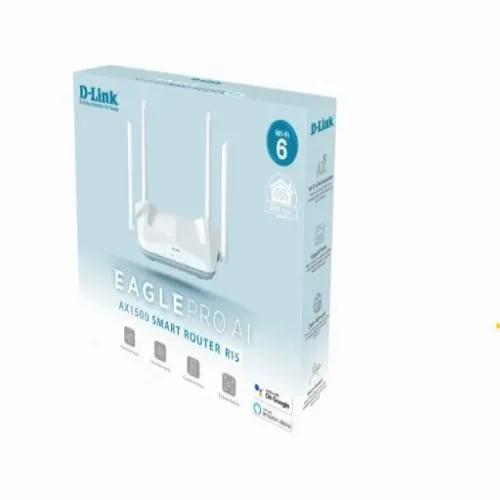 The D-Link R15 AX1500 Smart Router maintains optimal Wi-Fi performance with cutting-edge AI functions for ongoing network monitoring. With the AI Assistant on the free mobile app, managing your network has never been simpler. The ground-breaking D-Link EAGLE PRO AI series is being introduced, with AI-enabled features to improve your Wi-Fi and the AI Assistant to put complete control at your fingertips.